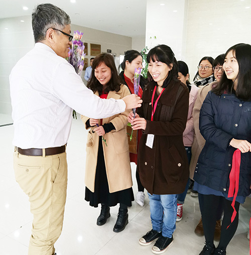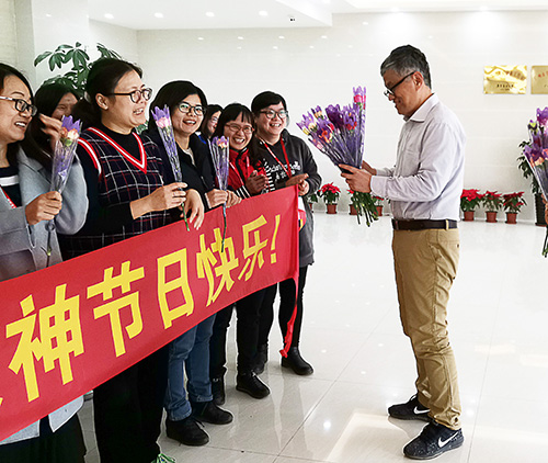 在派花送祝福的現(xiàn)場,女神們陣陣歡呼,參加活動的每位女員工臉上都洋溢著滿足和喜悅的笑容,沉浸在其樂融融的氣氛里。